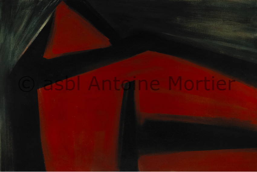 Extrait du catalogue de l’exposition : Blanc et Noir (1954), Dans le silence (1960): Antoine Mortier est considéré comme l’une des figures majeures de l’Abstraction Lyrique en Belgique. Il a produit une oeuvre importante et multiple sur grands formats, où il dévoilait son monde intérieur par un geste spontané, brossé largement sur la toile et le papier. Il créait ses peintures en virtuose dans le mouvement et la rapidité, avec une énergie emprunte de délicatesse. Inspiré par son environnement quotidien, ses sujets étaient déployés de manière monumentale, dans un équilibre formel révélateur d’une émotion sombre et intense.